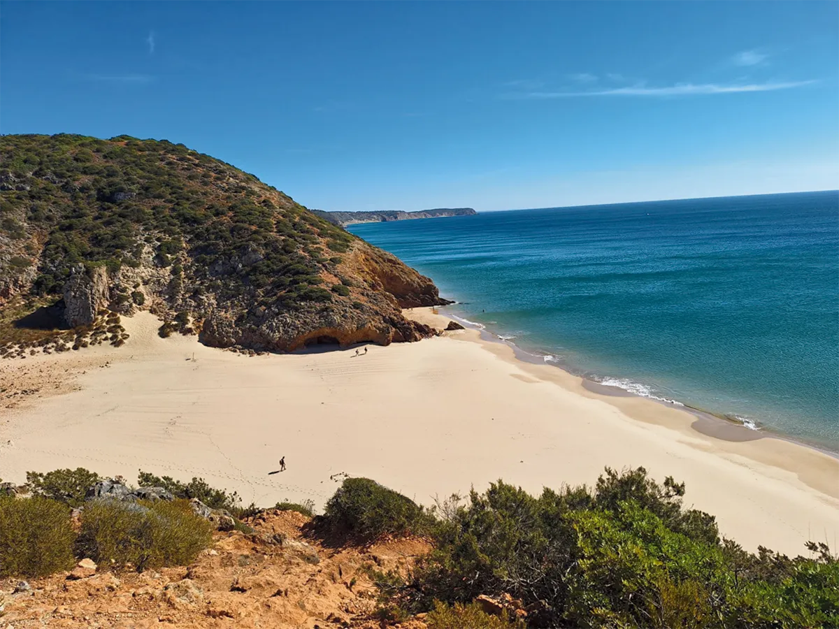 Certamente é a etapa mais quente e com mais praias deste trilho até Aljezur. O Algarve no seu esplendor, caminhando sempre no Parque Natural do Sudoeste Alentejano e Costa Vicentina (PNSACV). Praias, só praias, sem quase ninguém. Uma das partes mais selvagens e sem grandes ondas. Pequenas e maravilhosas praias para banhistas que gostam de intimidade. Às vezes partes de praia reservadas ao naturismo.