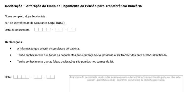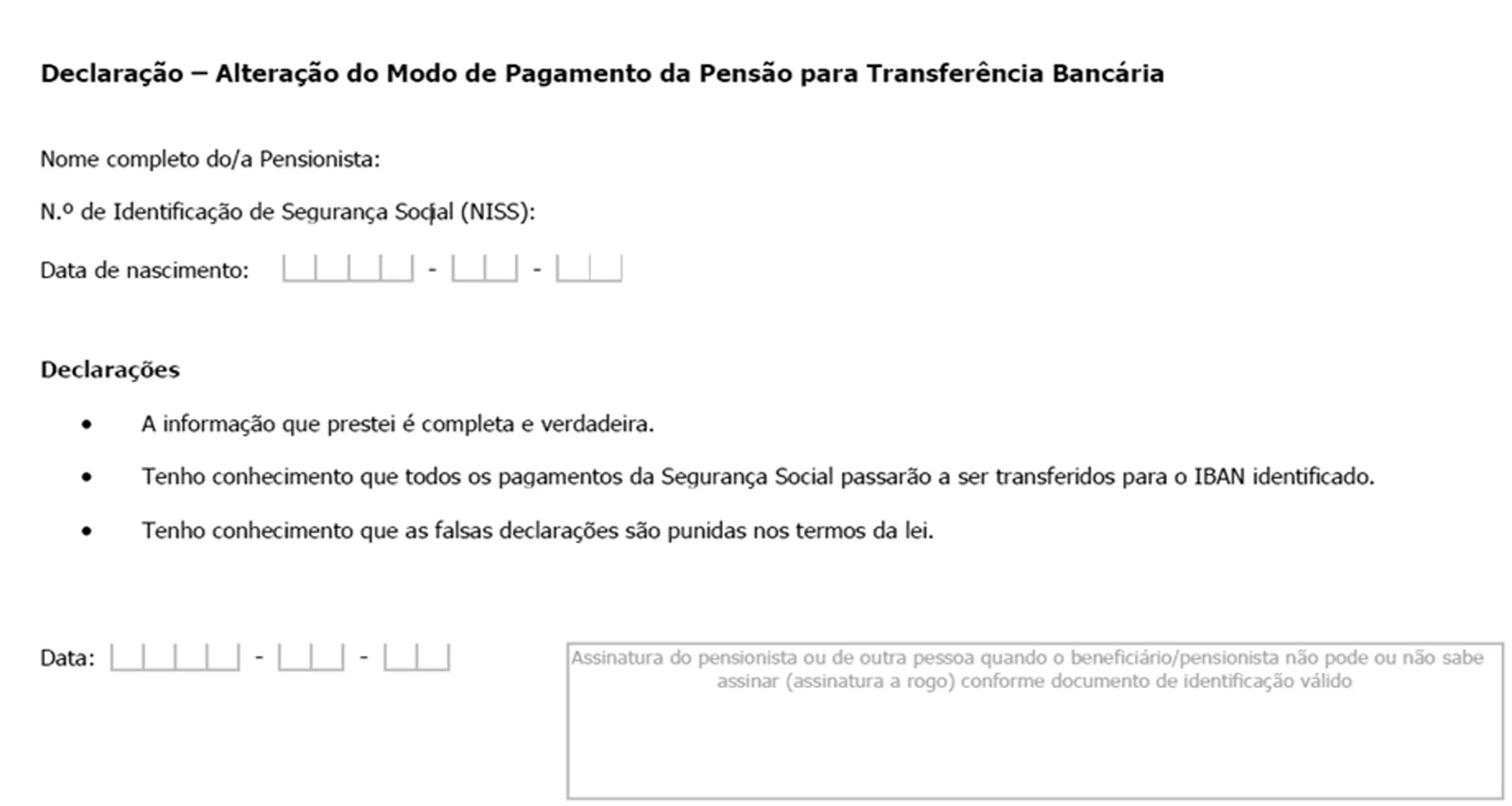 Alteração ao modo de pagamento da pensão para transferência bancária