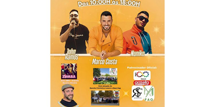 Ao longo de todo o dia serão muitas as atrações e atividades, contando com uma aula de Zumba, por Andreia Moreira; a participação de dois Ranchos: Rancho Folclórico Aldeias de Portugal – Baar/Zug e o Rancho Folclórico Terras de Portugal de Luzern; música com John Ramos e Nuniko; e a presença do celebre e melhor pasteleiro português, Marco Costa, que irá também estar com a venda dos seus livros de receitas autografados, juntamente com a escritora bestseller Susana Teixeira, que acaba de ver o seu terceiro livro “É Tempo de Seres Feliz”, da trilogia “Nunca Desistas De Ti”, no top de vendas e já em segunda edição.